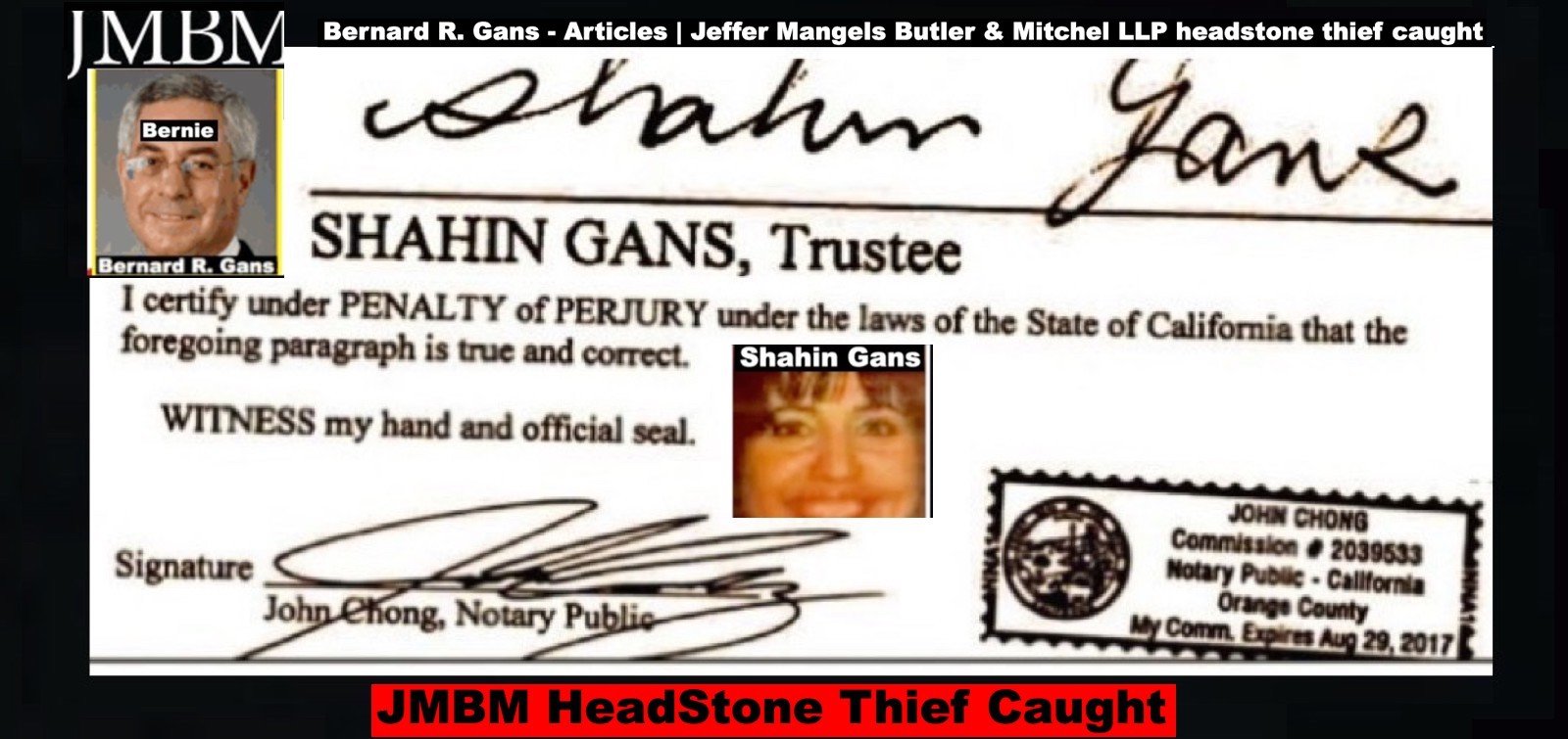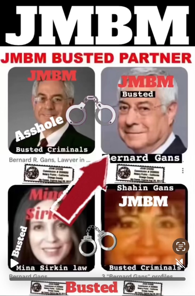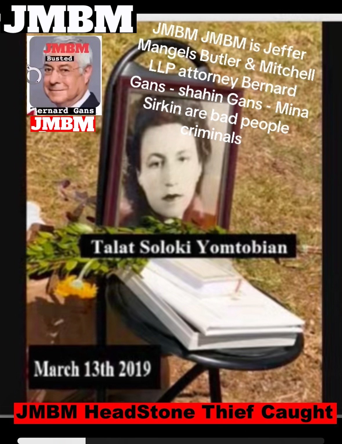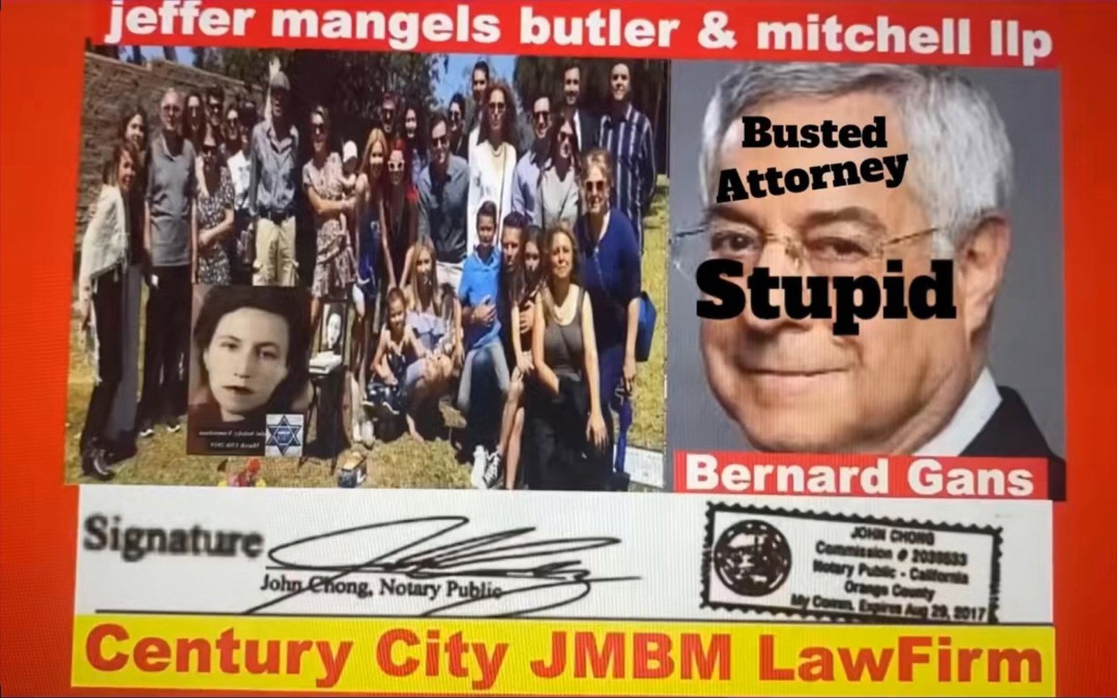 Suing JMBM partner $500,000,000,000.00 Busted criminal attorneys Jeffer Mangels Butler & Mitchell LLP lawyer Bernard Reginald Gans #57068 Bernard Gans Mina Sirkin law group JMBM killed my mom to get her fortune.Suing JMBM partner $500,000,000,000.00 Busted criminal attorneys Jeffer Mangels Butler & Mitchell LLP lawyer Bernard Reginald Gans #57068 Bernard Gans Mina Sirkin law group JMBM killed my mom to get her fortune.
