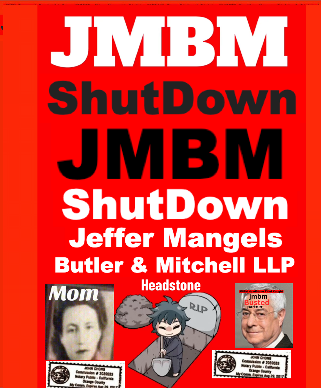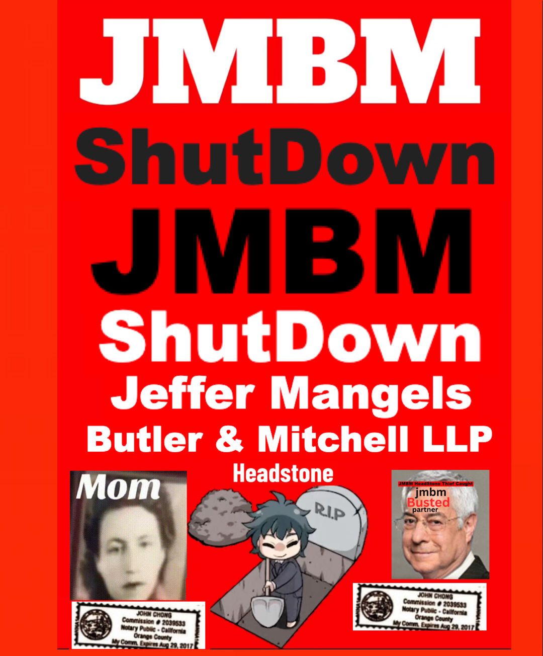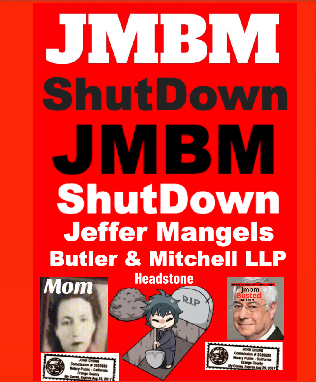 Suing JMBM partner $500,000,000,000.00 Busted criminal attorneys Jeffer Mangels Butler & Mitchell LLP lawyer Bernard Reginald Gans #57068 Bernard Gans Mina Sirkin law group JMBM killed my mom to get her fortune.Suing JMBM partner $500,000,000,000.00 Busted criminal attorneys Jeffer Mangels Butler & Mitchell LLP lawyer Bernard Reginald Gans #57068 Bernard Gans Mina Sirkin law group JMBM killed my mom to get her fortune..